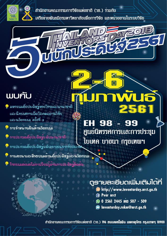 จัดมหกรรมงานวิจัย สิ่งประดิษฐ์ของไทยและนานาชาติ วันที่ 2-6 กุมภาพันธ์ 2561 ไบเทค บางนา กรุงเทพฯ
