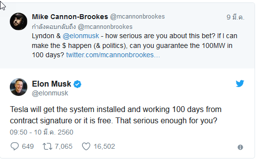 2017 ถึงวันที่ 1 ธันวาคม 2017 และถ้าหากเกินกำหนด เขาจะสร้างแบตเตอรี่นี้ให้โดยไม่คิดค่าใช้จ่าย ซึ่งมีมูลค่าอยู่ที่ 50 ล้านเหรียญ