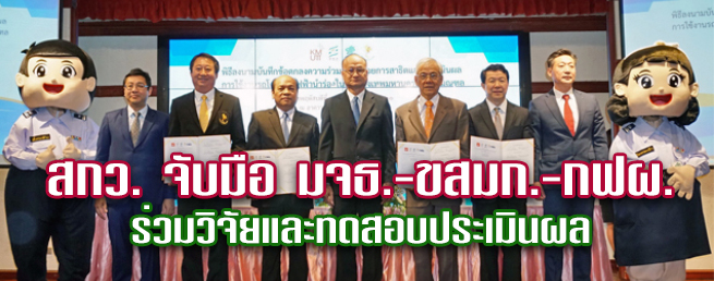 ระหว่าง สำนักงานกองทุนสนับสนุนการวิจัย (สกว.) องค์การขนส่งมวลชนกรุงเทพ (ขสมก.) การไฟฟ้าฝ่ายผลิตแห่งประเทศไทย (กฟผ.)