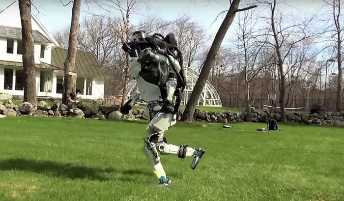 วิดีโอข้างต้นได้แสดงให้เห็นหุ่นยนต์ Humanoid (หุ่นยนต์เสมือนมนุษย์) นามว่า Atlas ที่สามารถวิ่งบนพื้นหญ้าได้อย่างเป็นธรรมชาติ และหยุดเมื่อเจอท่อนไม้ขวางทาง