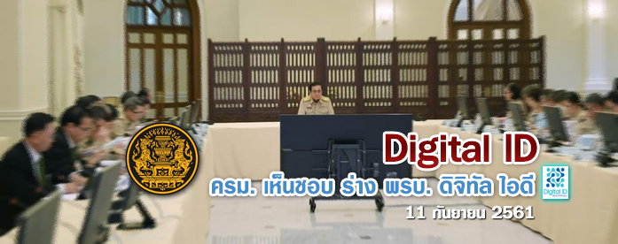 ครม. เห็นชอบ ร่าง พรบ. ดิจิทัล ไอดี ( Digital ID ) หรือ พระราชบัญญัติการพิสูจน์และยืนยันตัวตนทางดิจิทัล พ.ศ. …. เมื่อวันที่ 11 กันยายน 2561 โดยคณะรัฐมนตรีมีมติอนุมัติและรับทราบดังนี้
