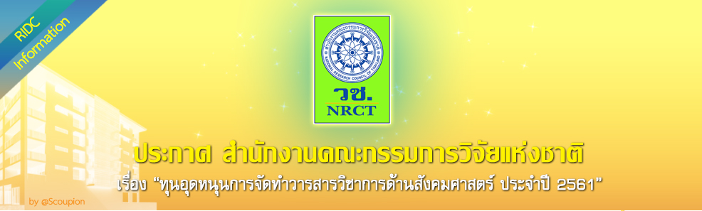จัดทำโดย ฝ่ายเชื่อมโยงสารสนเทศการวิจัย ศูนย์สารสนเทศการวิจัย@Scoupion Social Media RIDC-NRCT