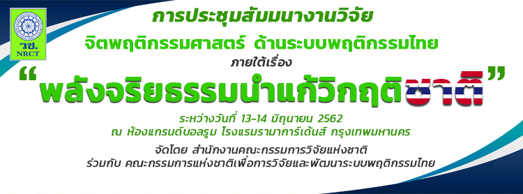 ขอเชิญนักวิจัยและผู้สนใจเข้าร่วมการประชุมสัมมนางานวิจัย จิตพฤติกรรมศาสตร์ ด้านระบบพฤติกรรมไทย ภายใต้เรื่อง "พลังจริยธรรมนำแก้วิกฤติชาติ"