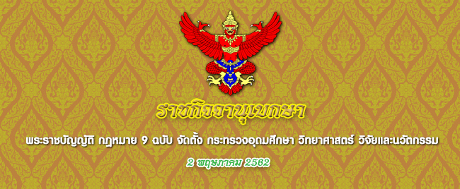 ราชกิจจานุเบกษา ประกาศใช้กกฎหมายเกี่ยวกับการจัดตั้ง "กระทรวงการอุดมศึกษา วิทยาศาสตร์วิจัยและนวัตกรรม"