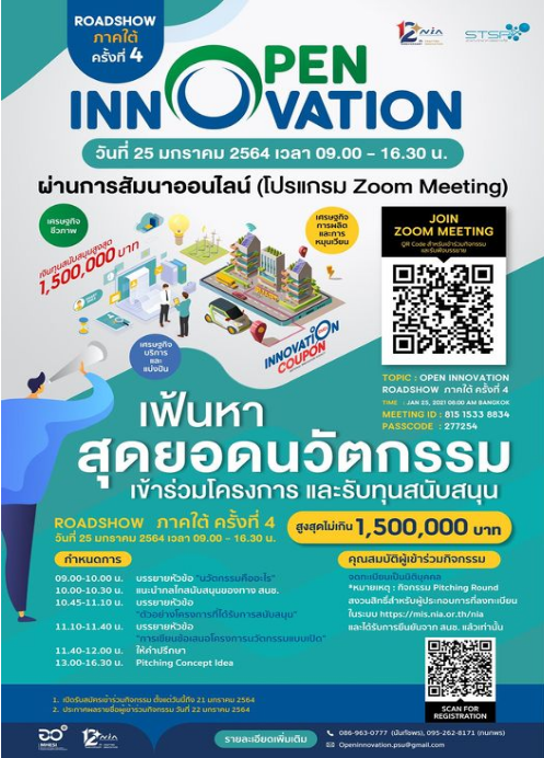 จากสำนักงานนวัตกรรมแห่งชาติ (องค์การมหาชน) หรือ สนช.ในวันที่ 25 มกราคม 2564 (09.00-16.30 น.)